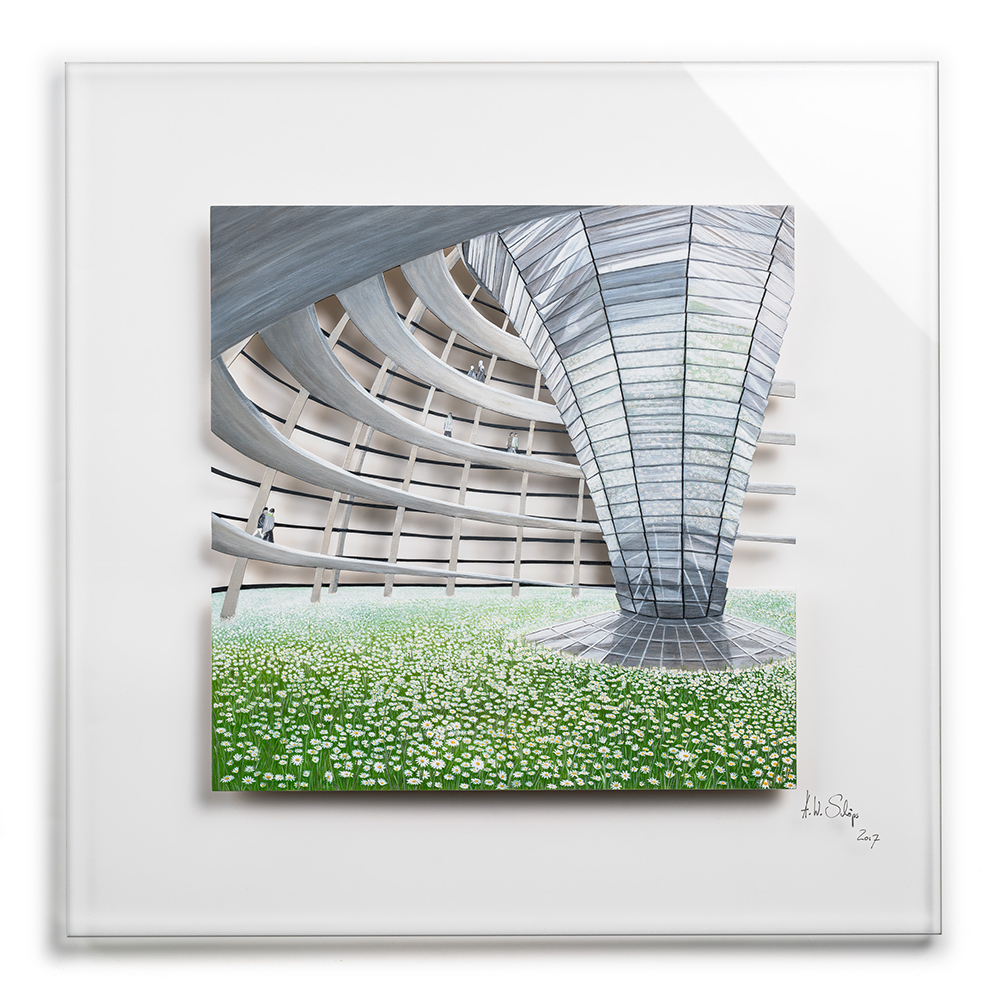 In der Serie "Architektur trifft Natur" sind faszinierende, reale Architekturwelten - oftmals in Kombination mit großen, üppigen und farbenprächtigen Blumenwiesen - zwischen Realität und Fantasie zu sehen...